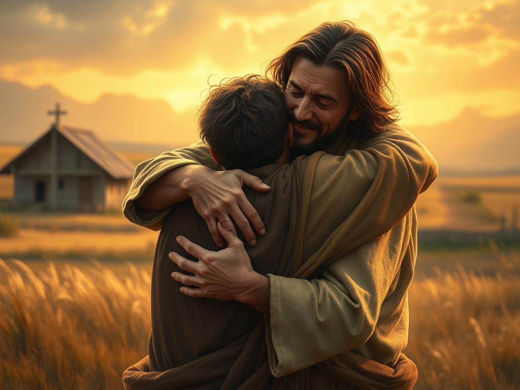 Enseguida se puso en camino hacia la casa de su padre. Estaba todavía lejos, cuando su padre lo vio y se enterneció profundamente. Corrió hacia él, y echándole los brazos al cuello, lo cubrió de besos. El muchacho le dijo: ‘Padre, he pecado contra el cielo y contra ti; ya no merezco llamarme hijo tuyo’.