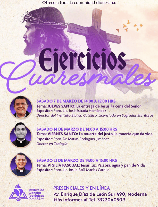 En este tiempo de Cuaresma, 𝒕𝒆 𝒊𝒏𝒗𝒊𝒕𝒂𝒎𝒐𝒔 𝒂 𝒑𝒓𝒐𝒇𝒖𝒏𝒅𝒊𝒛𝒂𝒓 𝒆𝒏 𝒆𝒍 𝒎𝒊𝒔𝒕𝒆𝒓𝒊𝒐 𝒄𝒆𝒏𝒕𝒓𝒂𝒍 𝒅𝒆 𝒏𝒖𝒆𝒔𝒕𝒓𝒂 𝒇𝒆 a través de los Ejercicios Cuaresmales organizados por el Instituto de Ciencias Teológicas Cursos